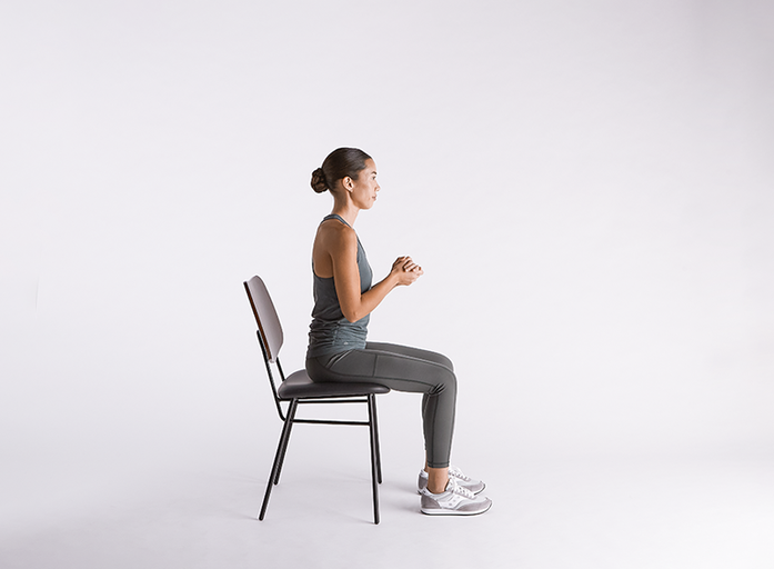 - Start seated in a standard chair (seat height about 43-45 cm).