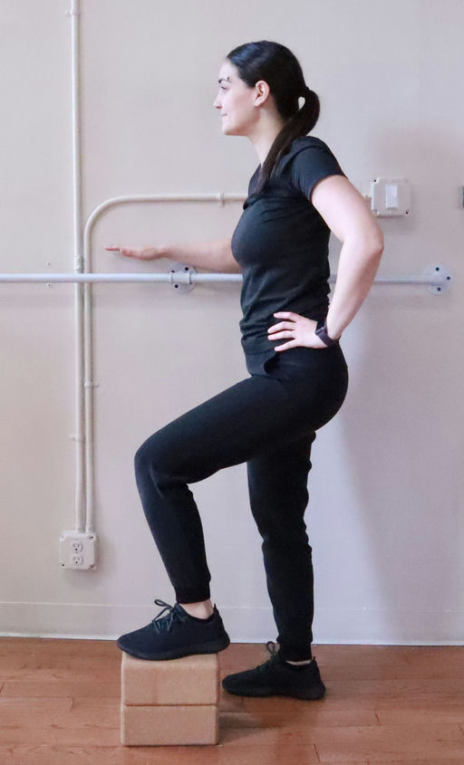 Step one foot lightly onto a box or step stool in front of you and try to maintain your balance for 1-2 minutes holding on as needed. Repeat for 2 sets on each side.