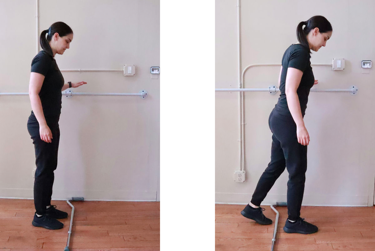 Place a small object such as a cane on the floor. Step forward so that you are close to the cane. Step over the cane with one foot and step that foot backwards to the starting position. Repeat for 2 sets of 10 repetitions on each side.