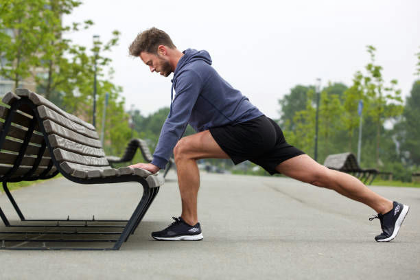 Step one foot forward into a lunge position while keeping the back knee on the ground. Tilt your pelvis forward to intensify the stretch in the hip flexors. This stretch is especially beneficial for those with tight hip flexors, commonly associated with prolonged sitting.